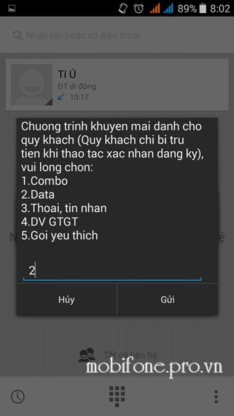 Lúc này, hệ thống sẽ đưa ra danh sách các gói cước mà thuê bao được hưởng, nếu đồng ý đăng ký, bấm số tương ứng với gói cước đó và bấm Gửi, còn nếu không bấm 0 để quay lại hoặc 00 để về Menu.