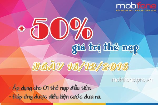 Chương trình khuyến mãi 50% thẻ nạp ngày 16/12/2016 từ Mobifone